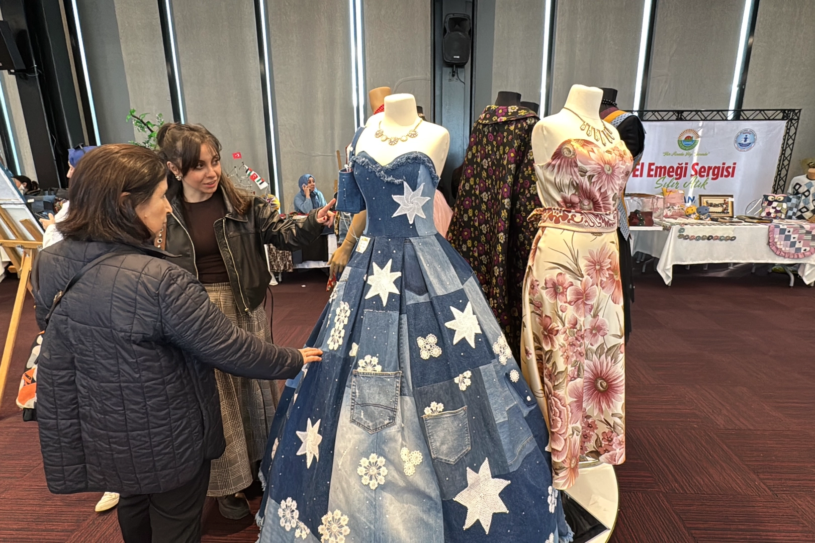 Samsun'da dikiş öğretmeni Betül Erdin ve arkadaşları, atık kot pantolonları geri dönüştürerek çanta, elbise ve pazar arabası üretti.