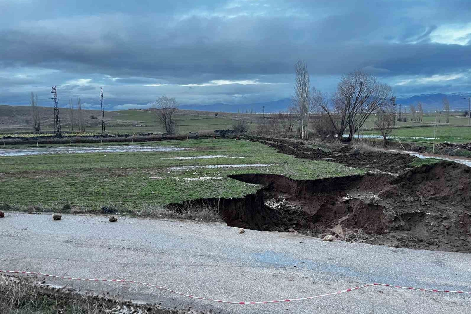 Afyonkarahisar Sandıklı’da aşırı yağışlar sonrası Hüdai Kaplıcaları ile Örenkaya köyü arasındaki yol çöktü. Hamam Çayı’nın taşmasıyla oluşan 4 metre derinliğinde ve 25 metre genişliğindeki dev çukur nedeniyle yol trafiğe kapatıldı. Ekipler onarım için çalışma başlattı.