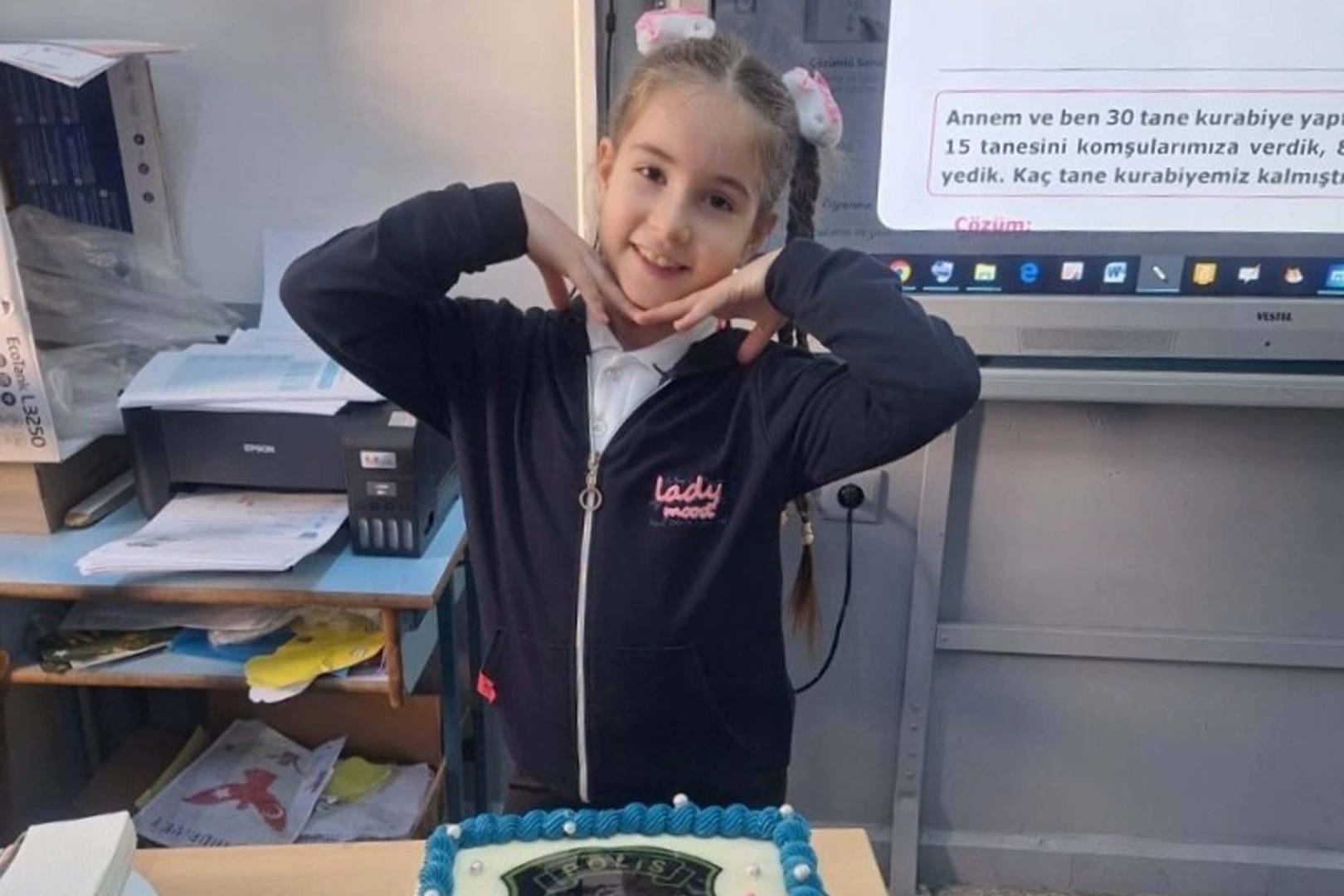 Özel Harekat üniformalarını karşılarında gören Asel Naz’ın yaşadığı şaşkınlık ve mutluluk, sınıfındaki tüm arkadaşlarına ve öğretmenlerine yansıdı. 2’nci sınıf öğrencisi olan minik Asel için düzenlenen kutlama, güzel bir tesadüfe de ev sahipliği yaptı. Asel Naz, doğum günü pastasının mumlarını, kendisiyle aynı gün doğan sınıf arkadaşıyla birlikte üfledi. Şehit babasının meslektaşlarıyla yan yana gelen Asel Naz ve arkadaşları, kahraman polislerle uzun süre sohbet edip hatıra fotoğrafları çektirdi. Sınıfın içi, bir evladın babasına duyduğu özlemin, devletin ve silah arkadaşlarının şefkatiyle sarmalandığı bir atmosferle doldu.
