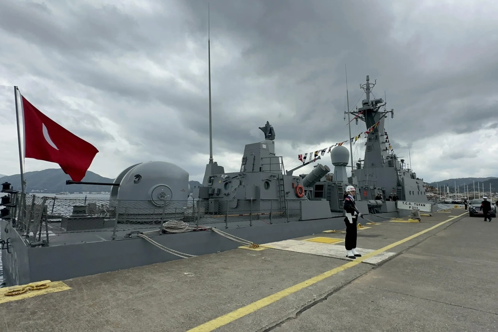 Muğla'nın Marmaris ilçesinde, 23 Nisan Ulusal Egemenlik ve Çocuk Bayramı kutlamaları coşkuyla devam ediyor. Etkinlikler kapsamında, Türk Silahlı Kuvvetlerine ait kılıç sınıfı TCG Tufan hücumbotu, Marmaris Cruise Port Limanı'nda vatandaşların ziyaretine açıldı.