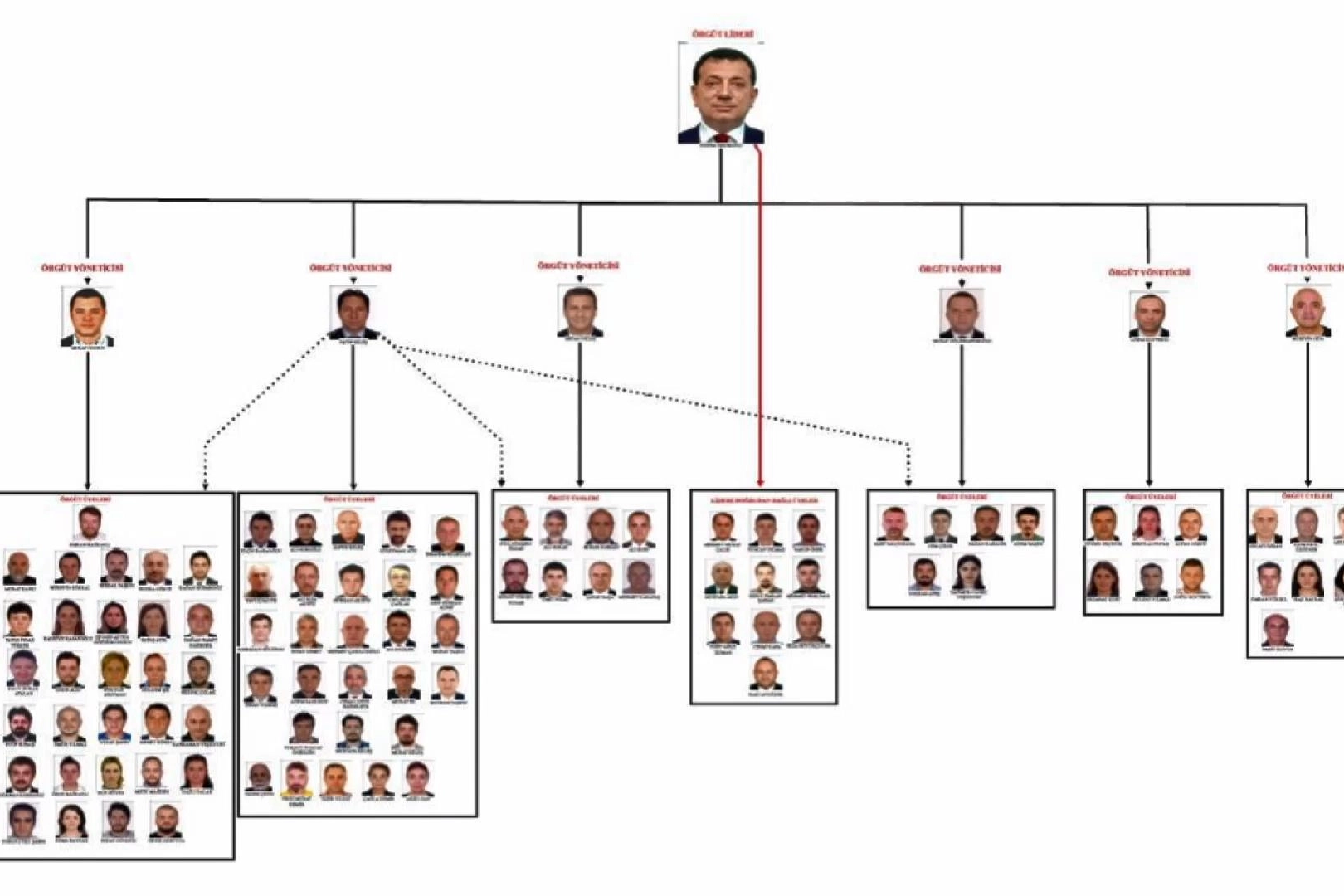 Hazırlanan iddianamede, Ekrem İmamoğlu liderliğinde kurulan 'İmamoğlu Çıkar Amaçlı Suç Örgütü' nün silahlı olmadığı, maddi menfaate dayalı ve fikir amaçlı kurulduğu, bundan kaynaklı örgütün gerçekleştirdiği eylemlerinde daha çok kamunun kendilerine sağlamış olduğu gücü kullandıkları belirtildi. Ayrıca hem örgüte üyeliği bulunan şüphelilerin hem de örgütün oluşturduğu 'Sisteme' para aktaran şüphelilerin kendi çıkarlarının da örgüt çıkarlarıyla paralel nitelikte olmasından kaynaklandığı, 'Sisteme' doğrudan veya dolaylı olarak para aktarmak zorunda kalan mağdur kişilerin ise örgütün kamusal gücünden korktuklarının anlaşıldığı tespit edildi. İddianamede, liderliğini şüpheli Ekrem İmamoğlu’nun yapmış olduğu suç örgütünün yöneticiliğini şüpheliler Murat Ongun, Ertan Yıldız, Fatih Keleş, Adem Soytekin, Murat Gülibrahimoğlu ve Hüseyin Gün’ün yaptığı bilgisi yer aldı. Öte yandan Tuncay Yılmaz, Mehmet Murat Çalık, Resul Emrah Şahan, Yakup Öner, Mustafa Akın, Cevat Kaya, Seza Büyükçulha ve Mehmet Pehlivan arasında herhangi bir örgüt yöneticisi olmaksızın doğrudan örgüt liderine bağlı hareket edip liderden almış oldukları emir ve talimatları yerine getirildiği tespit edildi. 'Suç örgütünün üye ya da yöneticilerinin bir kısmı, örgüt liderinde olduğu gibi kamu görevlilerinden oluşmaktadır' denilen iddianamede, örgütün yapılanmasının da kamu kurumları içerisindeki ilişkilerle oluştuğu ve kamunun sağlamış olduğu nüfuz ve kaynakları kullanarak örgütün büyümesinin gerçekleştiği, örgüt içerisindeki şüphelilerin örgüt içi hiyerarşik yapıdaki bulundukları pozisyonla örgüt üyesi ya da yöneticilerin resmi görevleri olan kamu kurumu içerisindeki görev tanımları arasında farklılıklar mevcut olduğu belirtildi.