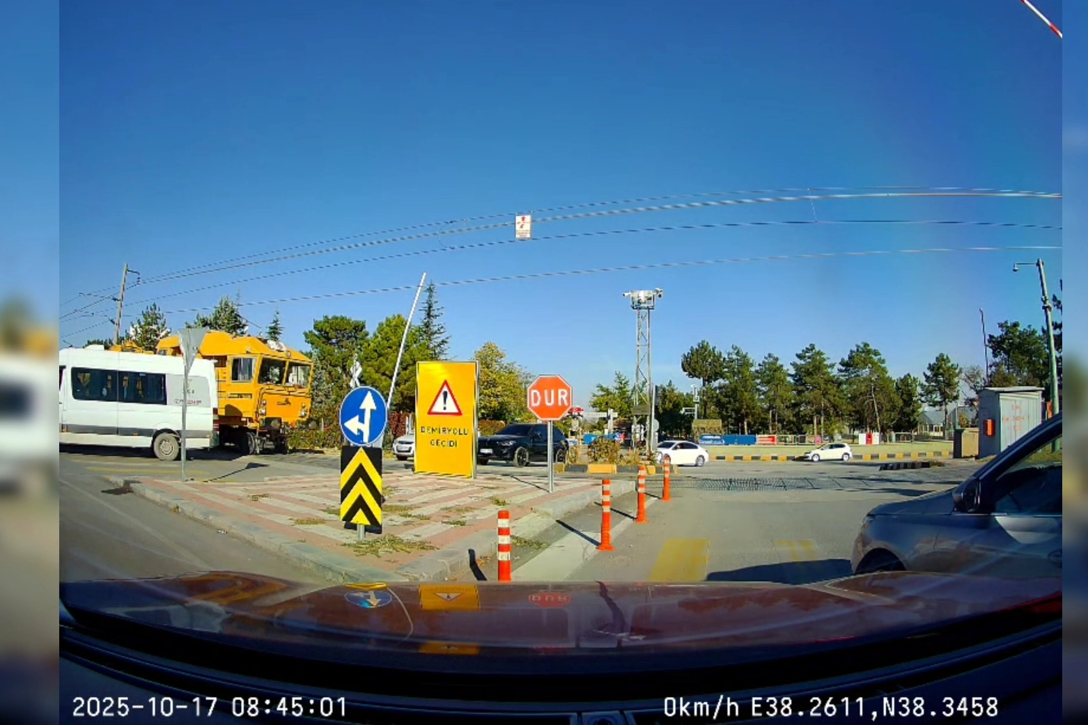 Olay, sabah saatlerinde 2'nci Ordu Hava Lojmanları önündeki hemzemin geçitte meydana geldi. 2 vagonlu bakım onarım treni hemzemin geçitten geçmeden önce yolu kapatan bariyerler erken açıldı. Bu sırada hemzemin geçitte bekleyen içinde öğrencilerin bulunduğu servis minibüsünün sürücüsü aracı hareket ettirip karşıya geçti. Arkadaki araçların sürücüleri ise trenin geldiğini fark edip bekledi. Kaza saniyelerle atlatılırken, o anlar hemzemin geçitte bekleyen başka bir aracın kamerasına yansıdı.