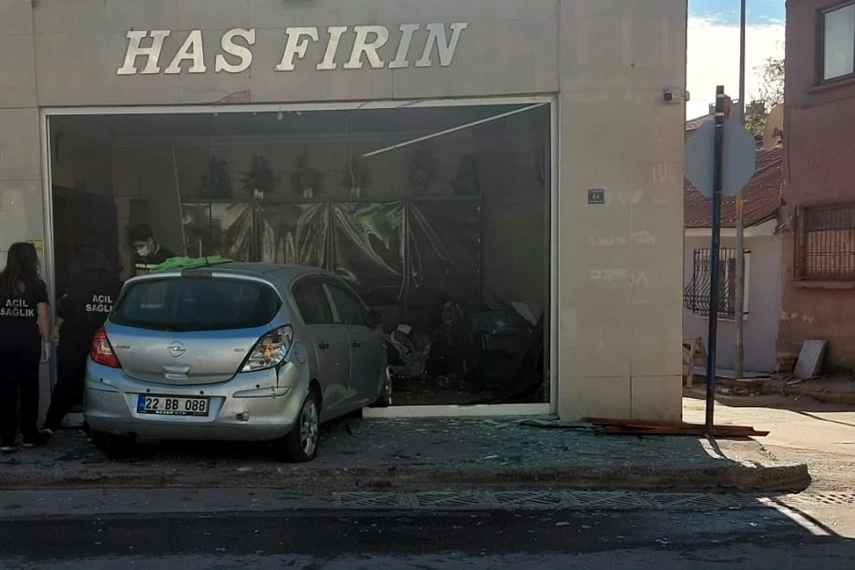 Kaza, saat 13.00 sıralarında Eski İstanbul Caddesi’nde meydana geldi. İbrahim K.’nin kontrolünü yitirdiği 22 BB 088 plakalı otomobil, camekanı kırıp ekmek fırınına girdi. Kazada sürücü İbrahim K. ve fırında bulunan 3 kişi yaralandı. Çevredekilerin ihbarı üzerine kaza yerine polis ve sağlık ekipleri sevk edildi. 4 yaralı ambulanslarla Sultan 1’inci Murat Devlet Hastanesi ve Trakya Üniversitesi Tıp Fakültesi Hastanesi’ne sevk edildi.