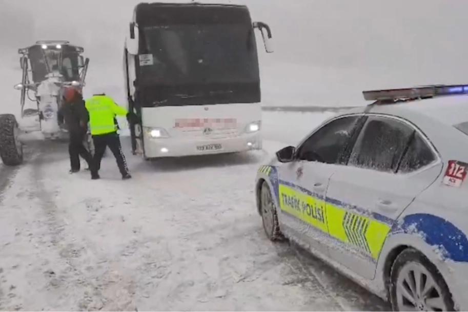 İhbarı alır almaz bölgeye hareket eden trafik ekipleri, tipi nedeniyle kapanma noktasına gelen yolda güçlükle ilerleyerek otobüsün bulunduğu konuma ulaştı. Ekiplerin siren seslerini duyan ve polis araçlarının ışıklarını gören otobüs yolcuları rahat bir nefes aldı. Polis ekipleri, öncelikle yolcuların sağlık durumlarını kontrol etti ve herhangi bir olumsuzluk yaşanmaması için güvenlik önlemlerini aldı.