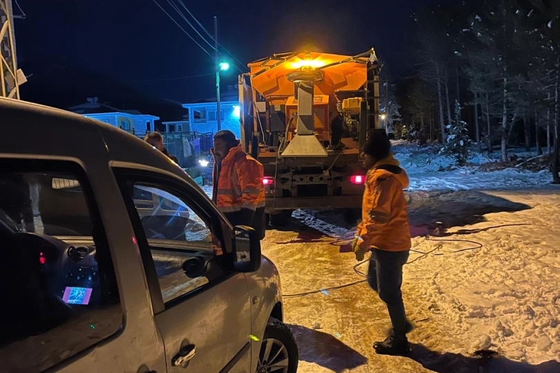 Soğuk hava ve karanlığın bastırmasıyla endişeli bekleyişe geçen ailenin ihbarı üzerine yetkililer hızla harekete geçti. Bölgeye en yakın konumda bulunan Mersin Büyükşehir Belediyesi Tarsus-Çamlıyayla Koordinasyon Şube Müdürlüğü ekipleri, kar küreme kamyonları ve iş makineleriyle olay yerine sevk edildi. Ekipler, kara saplanmış hafif ticari aracı kurtarmak için halatlar yardımıyla çekme işlemi uyguladı. Titiz bir çalışma yürüten belediye personeli, aracı zarar vermeden saplandığı kar kütlesinden kurtararak tekrar yola çıkardı.