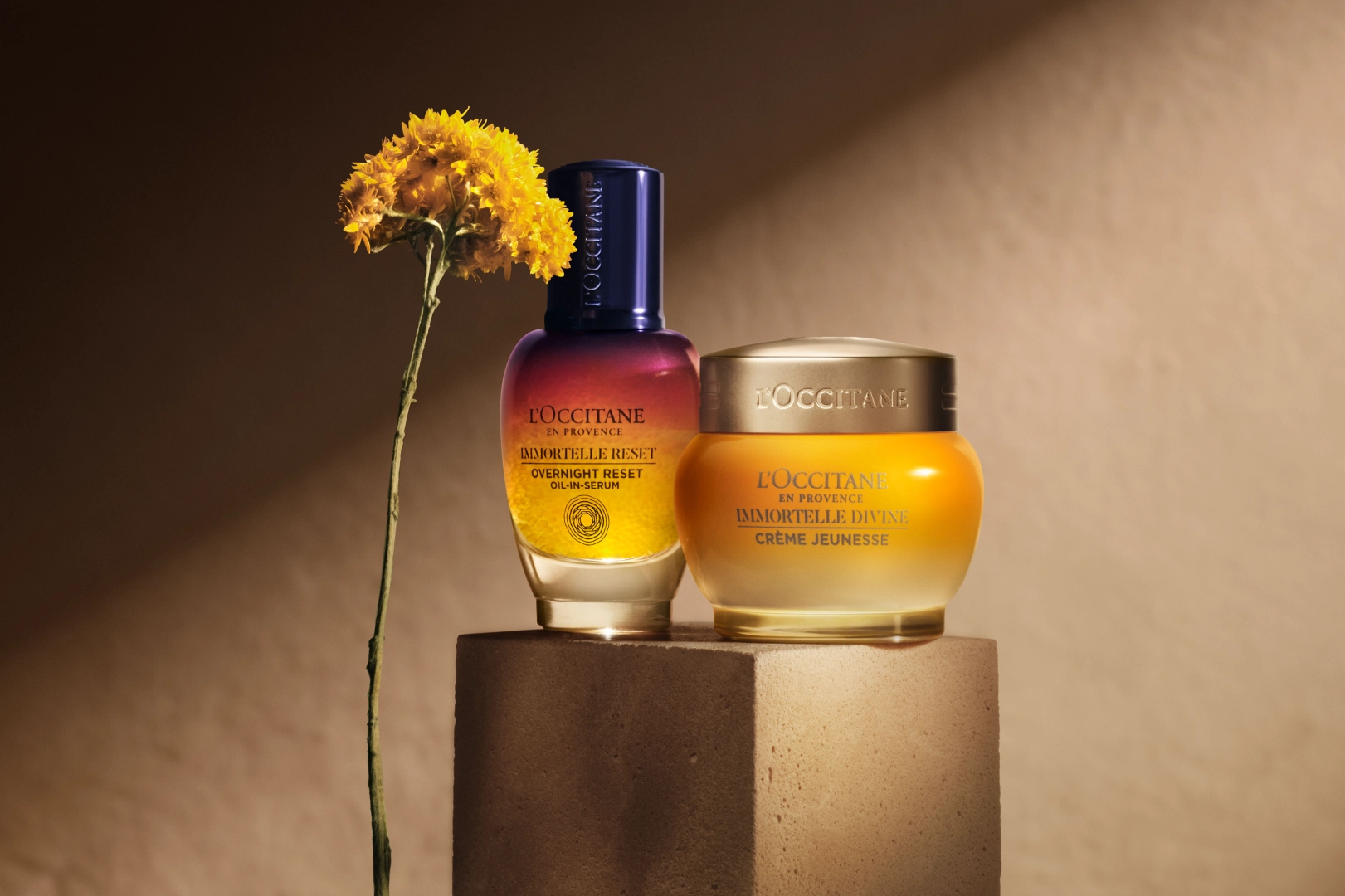 Ölmez otu çiçeğinin beş özünü de içeren L’Occitane Reset Serum ve Divine Krem, sonsuzlukla eş değer olan Ölmez otu çiçeğine adeta bir saygı duruşu. Bakıma Reset ile başlayıp Divine Krem ile bitirdiğinizde bu iki nazik güç, gündüz ya da gece saatler boyu cildi yenilemek ve gençleştirmek için çalışıyor.