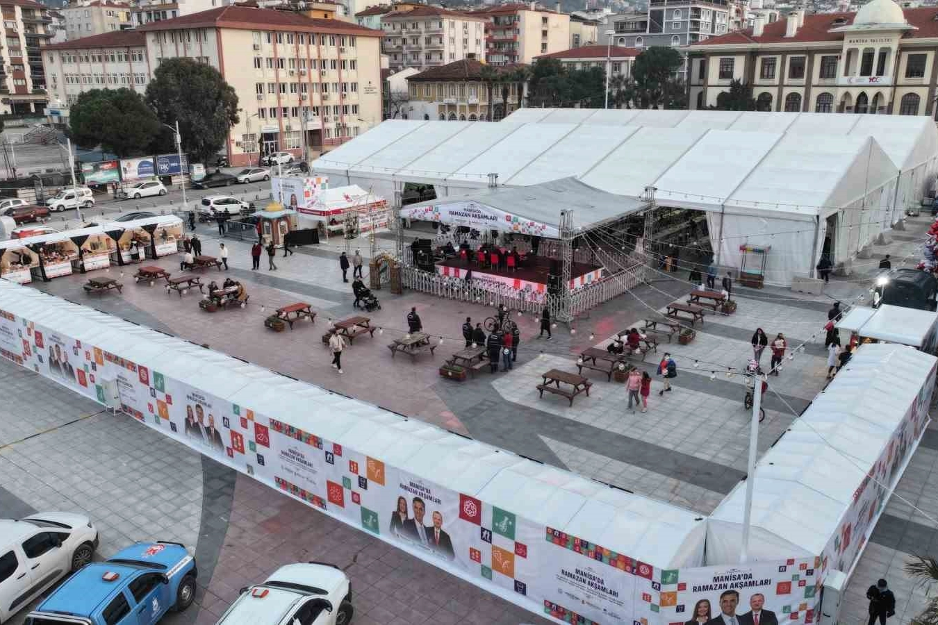 Büyükşehir Belediyesi, 29 gün boyunca her akşam Cumhuriyet Meydanı’nda iftar organizasyonu gerçekleştirecek. Ayrıca 16 gün süresince eski garaj alanında da iftar sofraları kurulacak. Bununla birlikte 17 ilçenin tamamında belirlenen gün ve noktalarda “bereket sofraları” kurulacağı açıklandı. Program kapsamında toplamda 160 binin üzerinde vatandaşın iftar sofralarında bir araya gelmesi planlanıyor.