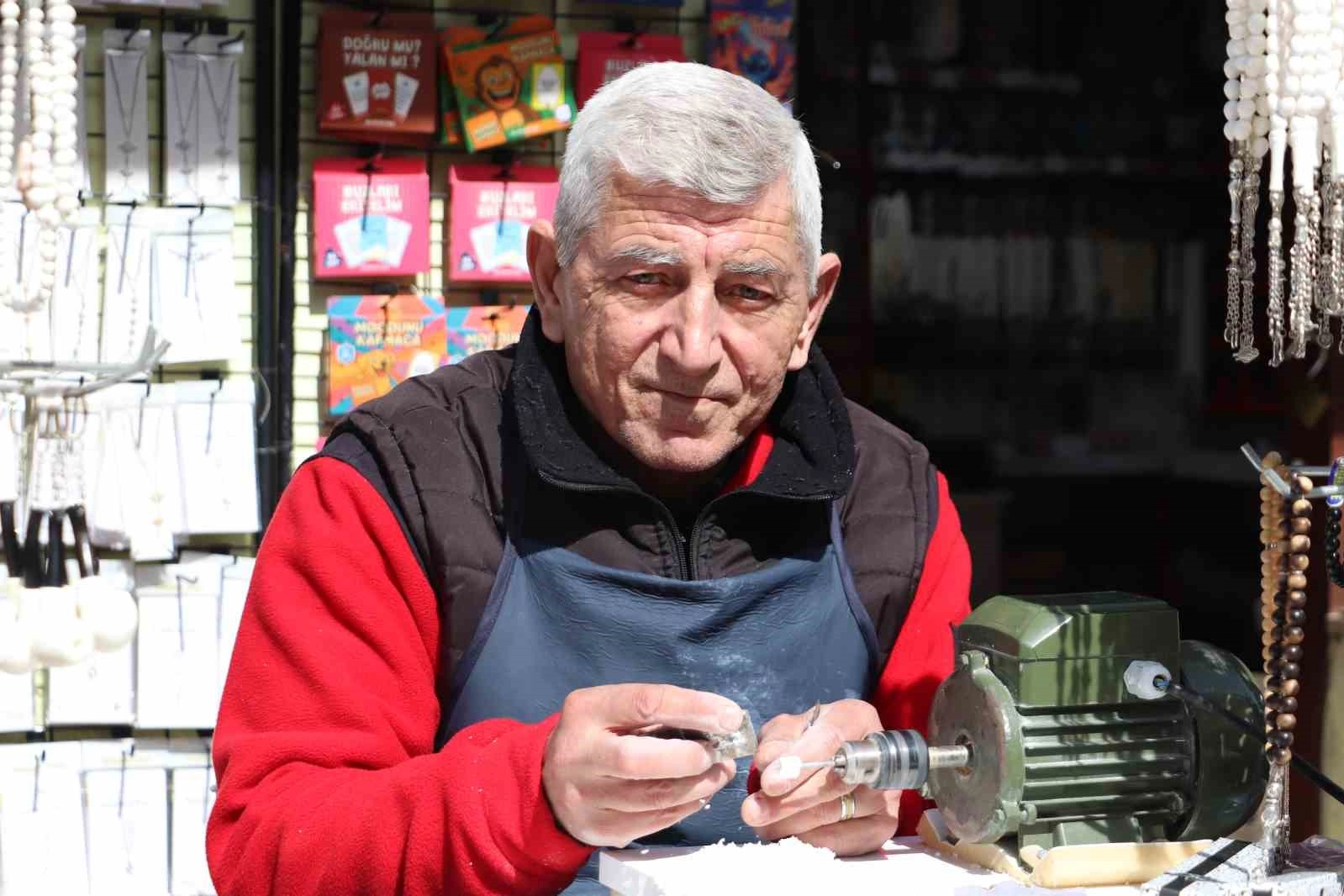 Bölgedeki esnafın bayram dönemindeki yoğun tempoya nasıl hazırlandığını ve müşteriyle kurduğu o samimi bağı özetleyen tecrübeli usta Çalışkandinç, işin sırrını şu vurucu cümlelerle dile getirdi: "Bütün ürünlerimizi satıyoruz ama biz lüle taşımızın özelliklerini, faydalarını anlattığımızdan dolayı lüle taşından tespih ve bilekliği çok satarım. Takılarımızın hepsini lüle taşı ile süslüyoruz."