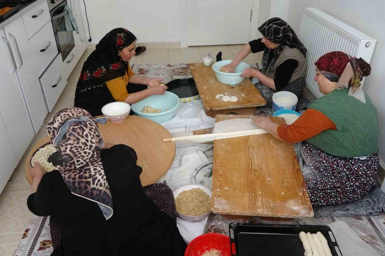 Yozgatlı kadınlar, bayram sofraları için imece usulü bir araya gelerek yöreye özgü gazete, kadayıflı ve burma tatlısı yapımına başladı.