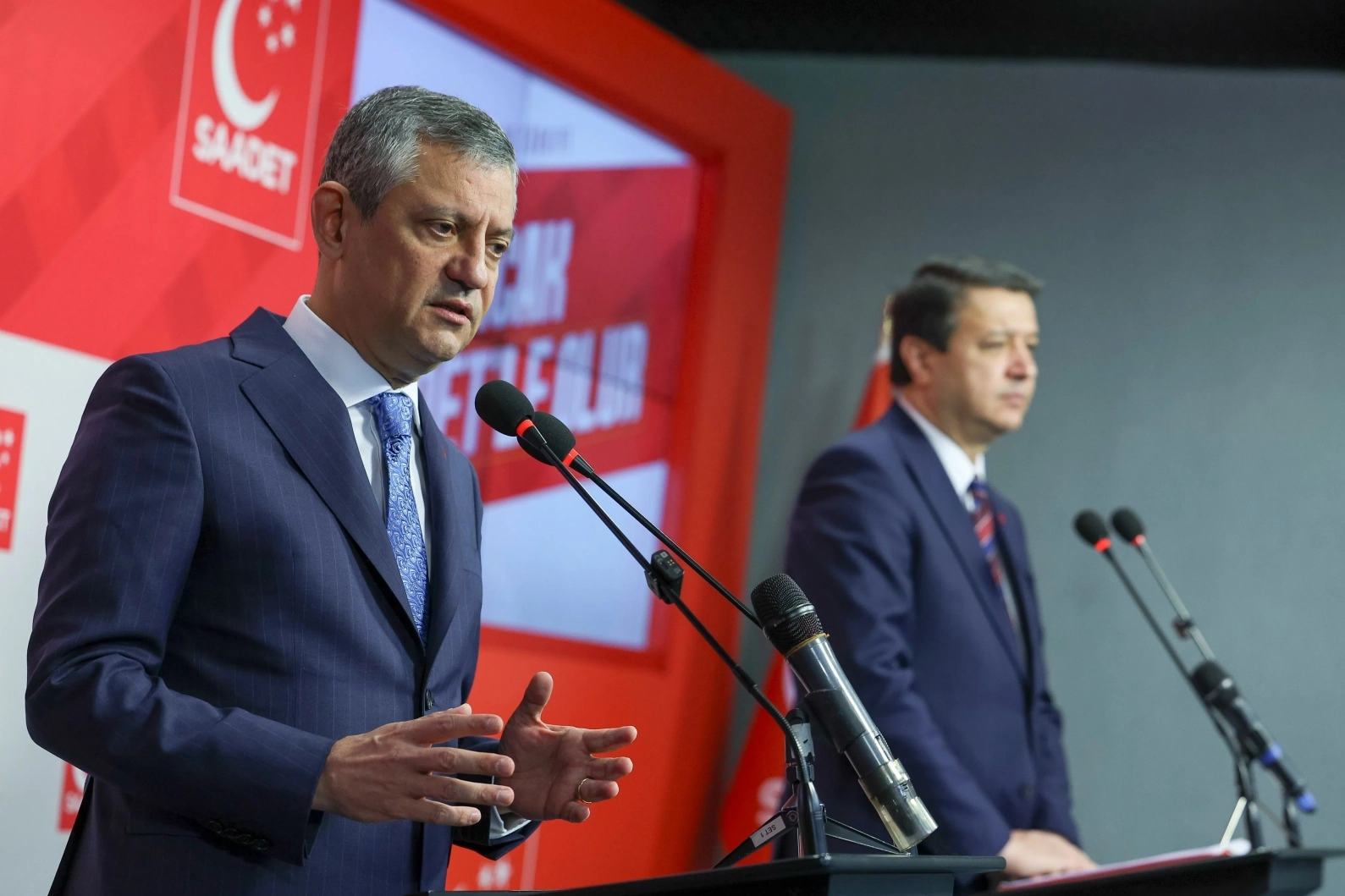 CHP Genel Başkanı Özgür Özel, Saadet Partisi Genel Başkanı Mahmut Arıkan’ı genel merkezde ziyaret etti. Yaklaşık 1 saat süren basına kapalı görüşmenin ardından iki lider, kameraların karşısına geçerek ortak bir basın toplantısı düzenledi. Toplantının ana gündem maddesini Türkiye'nin erken seçim ve anayasal zorunluluk haline gelen ara seçim tartışmaları oluşturdu.