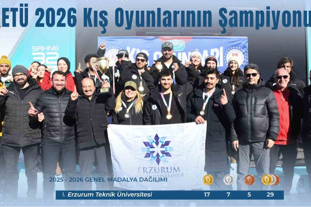 Türkiye Üniversite Sporları Federasyonu tarafından düzenlenen 2026 Kış Oyunları’nda Erzurum Teknik Üniversitesi (ETÜ) önemli bir başarıya imza attı. Erzurum’da gerçekleştirilen organizasyonda ETÜ sporcuları toplam 29 madalya kazanarak genel sıralamada birinci olmayı başardı.