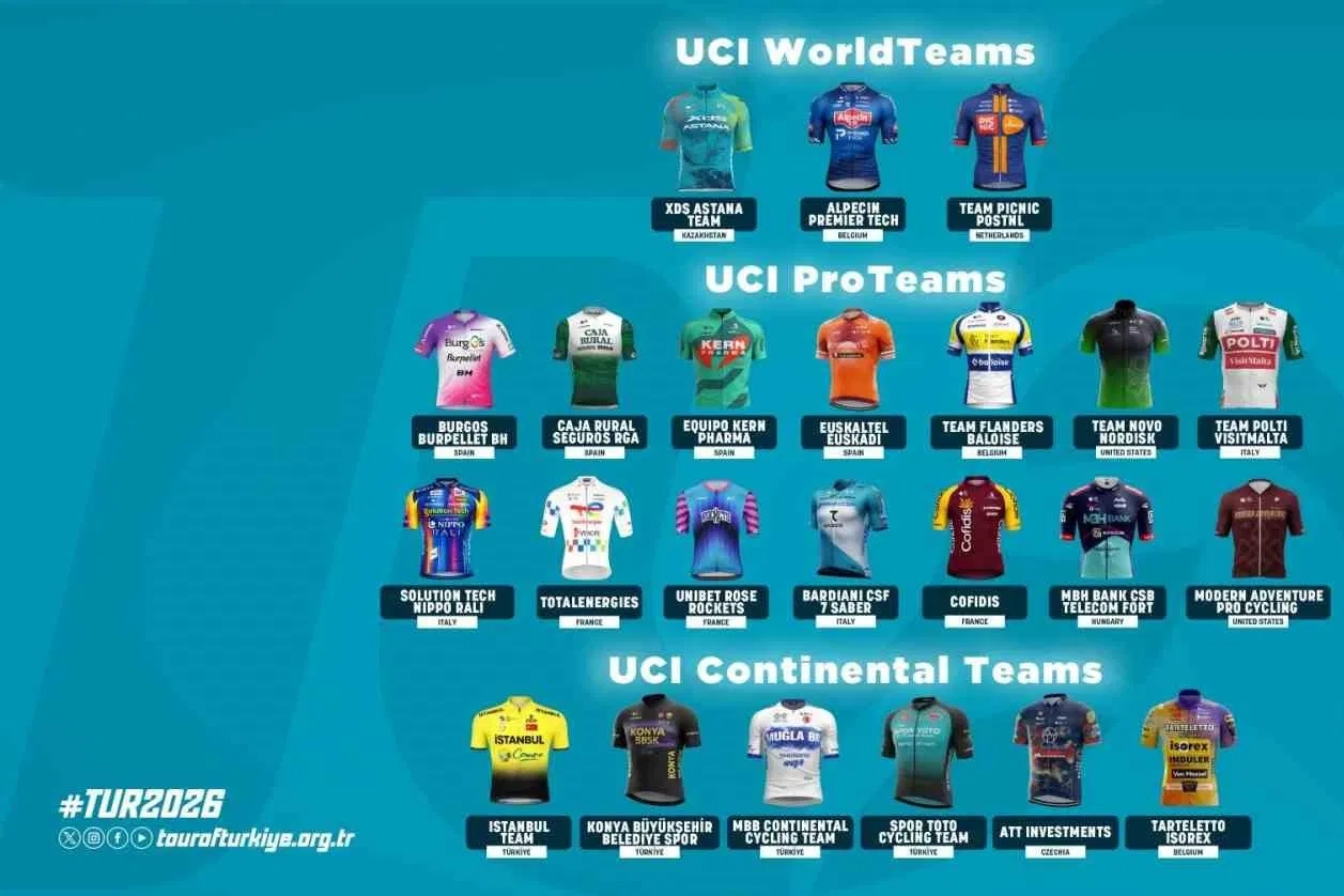TUR 2026'da 27 farklı ülkeden toplam 161 sporcu pedal çevirecek. Organizasyonda 3 WorldTeam, 14 ProTeam ve 6 Continental Team olmak üzere 23 UCI takımı mücadele edecek.