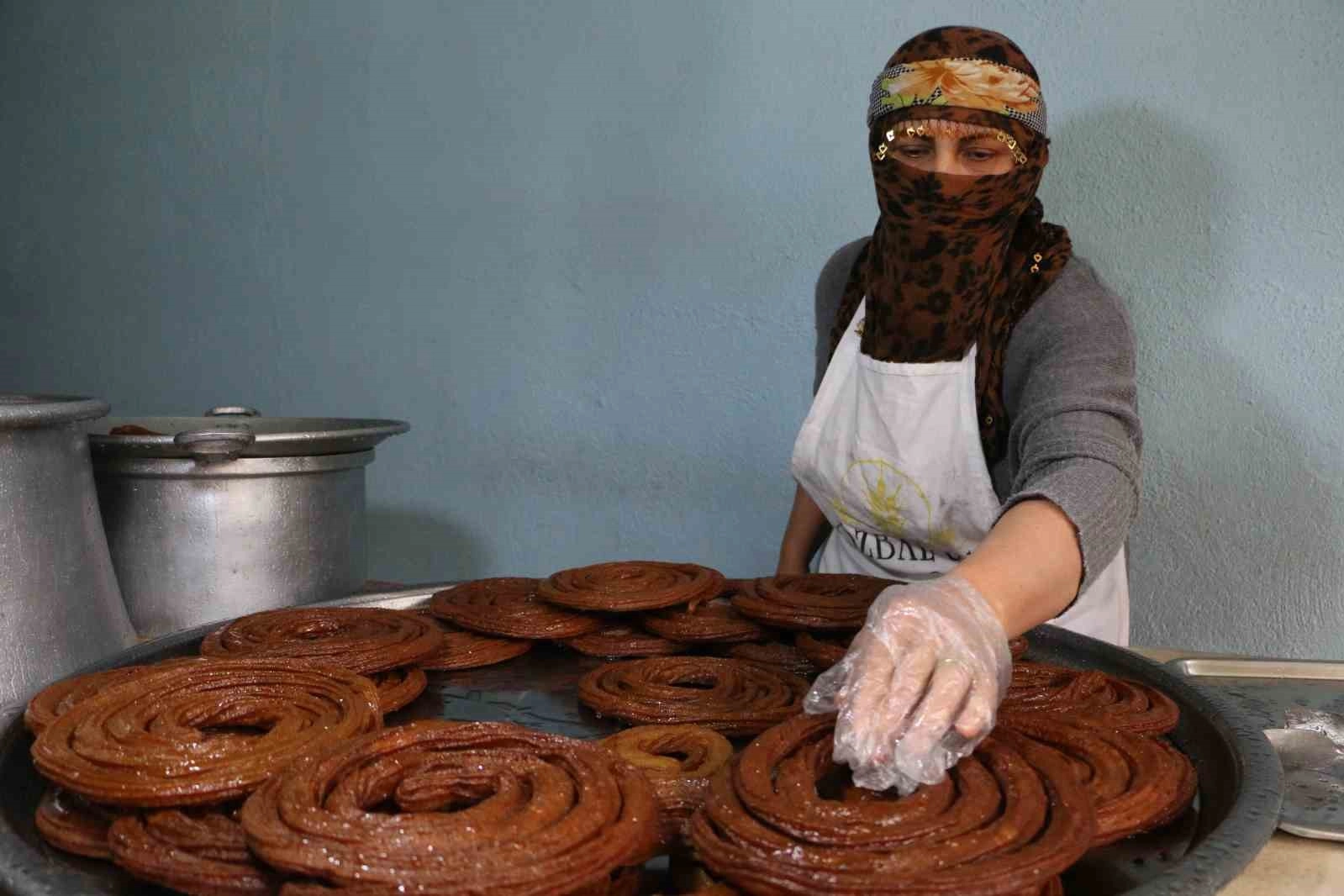 “31 yıldır halka tatlı yapıyoruz. Gelinlerim ve kızlarım da arka planda bize yardım ediyor. 11 yıl boyunca Sur ilçesi Dört Ayaklı Minare civarında dükkânımız vardı. Oradan taşınıp Şehitlik Mahallesi’ne geldik. 20 yıldır buradayız eşimle birlikte. 3 oğlumu bu dükkândan kazandıklarımız ile evlendirdik. Şu an 1 oğlum ve 1 kızım bekâr. Ramazan ayında tüm aile burada çalışıyoruz, yetiştiremiyoruz.”