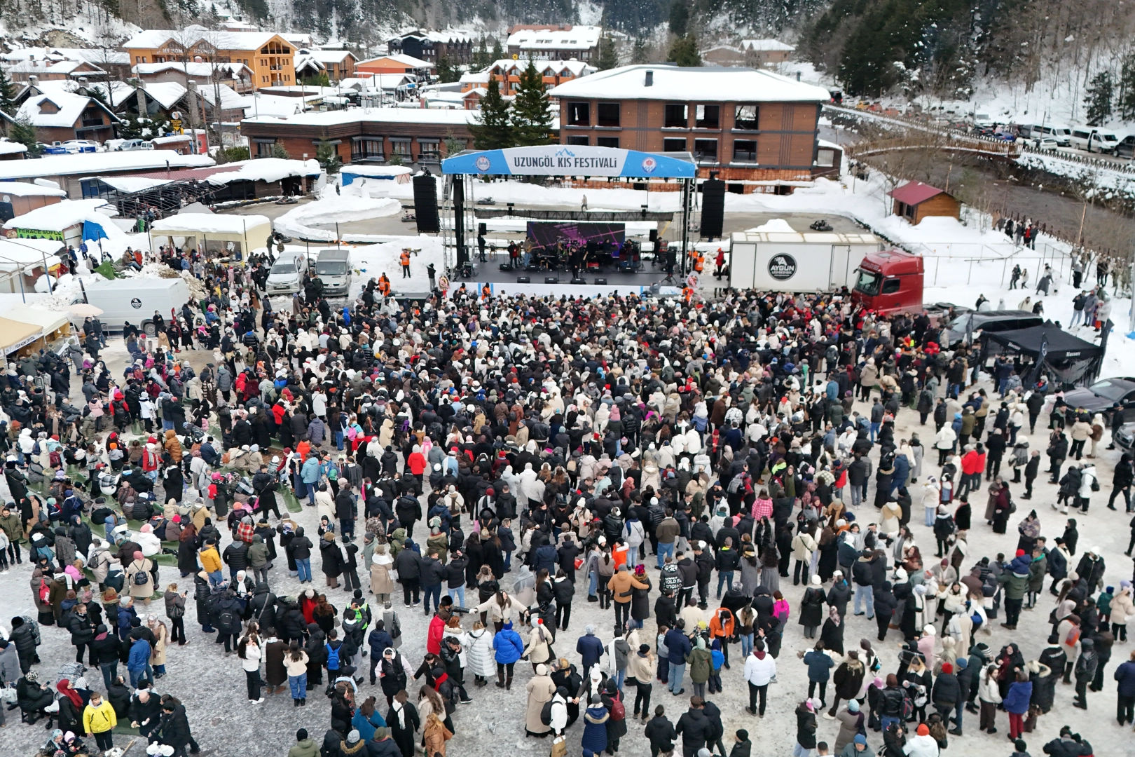 Karadeniz turizminin göz bebeği Uzungöl, sadece yazın değil kışın da cazibe merkezi olma yolunda önemli bir adım attı. Çaykara ilçesinde düzenlenen ve bu yıl ilki gerçekleştirilen Uzungöl Kış Festivali, ikinci gününde renkli görüntülere sahne oldu. Kar yağışının ardından kartpostallık bir görünüme kavuşan yaylada, konserlerden kar oyunlarına, kızak keyfinden ateş başı sohbetlerine kadar pek çok etkinlik düzenlendi. Buz tutan göl çevresinde yürüyüş yapanlar dron ile görüntülenirken, festival alanında yakılan ateşlerde kestane pişiren vatandaşlar keyifli anlar yaşadı.