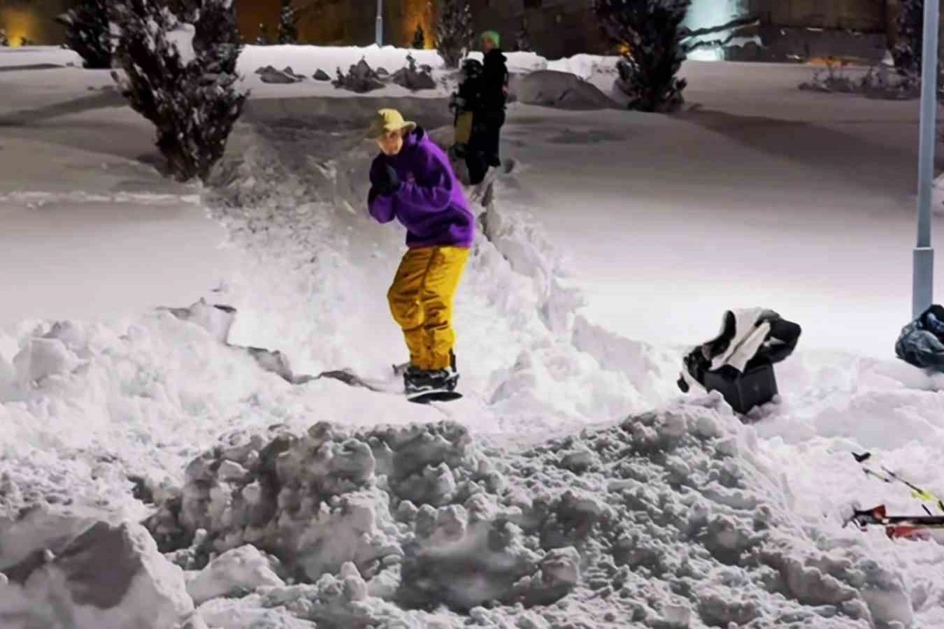Şehrin en önemli tarihi sembollerinden biri olan ve asırlara meydan okuyan Erzurum Kalesi, bu kez bambaşka bir etkinliğe, modern bir ekstrem spor gösterisine ev sahipliği yaptı. Kar kalınlığının elverişli seviyeye ulaşmasını fırsat bilen gençler, kalenin hemen önündeki eğimli alanı kendi imkanlarıyla düzenleyerek küçük ama işlevsel bir snowboard pisti haline getirdi.