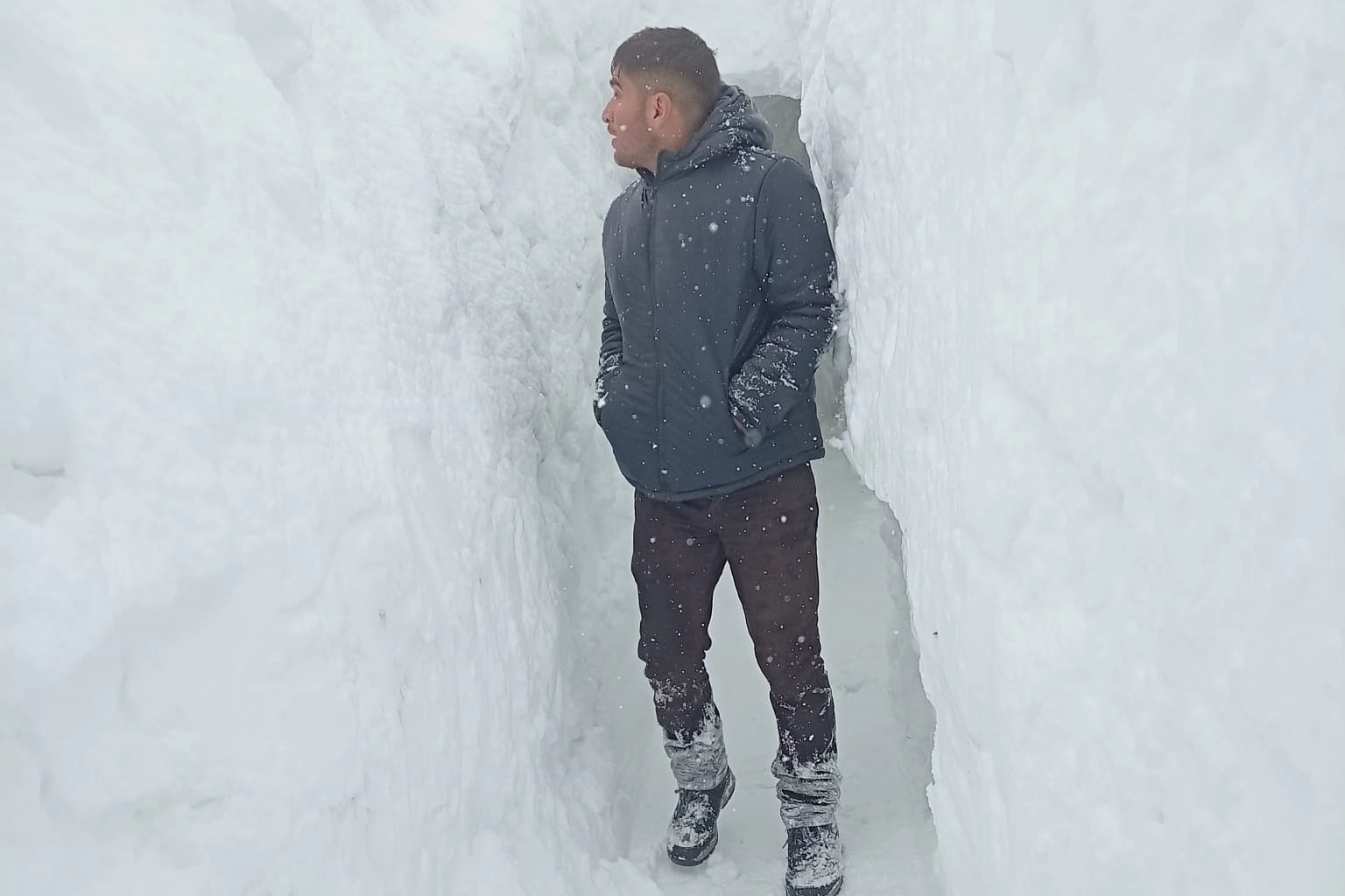 Van’ın Çatak ilçesinde kış, film sahnelerini aratmayan görüntülere sahne oldu. Kar kalınlığının rüzgarın etkisiyle 2 metreyi aştığı mezrada, evi kara gömülen Kemal Tuci (25), geçim kaynağı olan hayvanlarına ulaşabilmek için karı kazarak kendine bir tünel açtı.