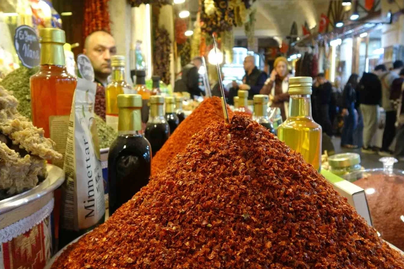 Antep fıstığı, doğal kurutmalıklar ve baharat çeşitleri.