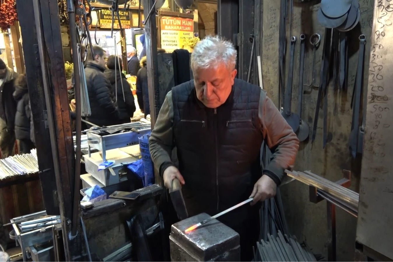 Tarihi çarşının taş duvarları arasında yankılanan her çekiç sesi, aslında kaybolmaya yüz tutmuş bir geleneğin hayata tutunma çığlığı gibi. Erol Usta, sadece demiri dövmüyor; aynı zamanda sabrı, emeği ve alın terini de o demire işliyor.
