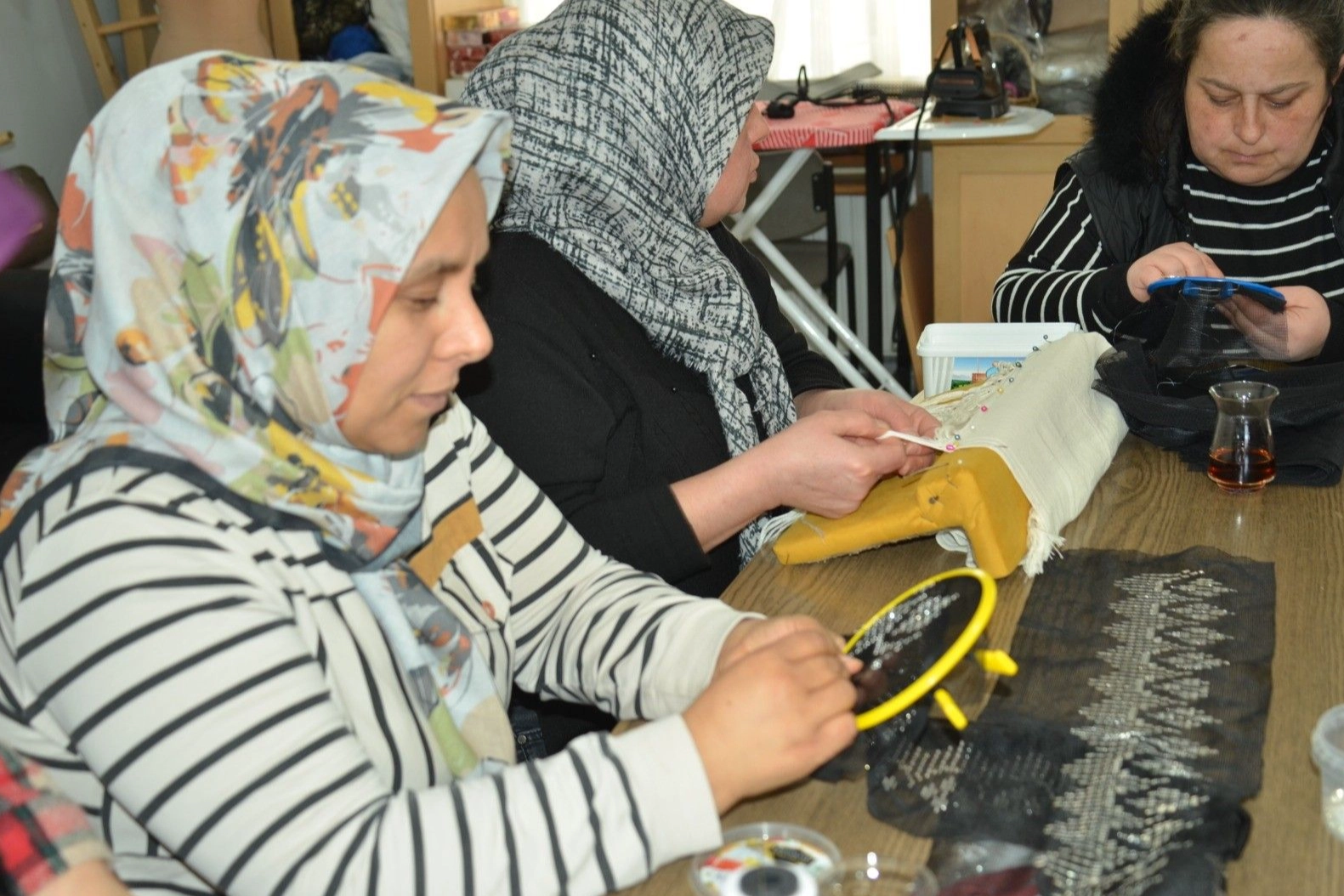 Sabahın erken saatlerinde ev işlerini tamamlayan kadınlar, soluğu kurs merkezinde alıyor. Burada sadece el becerilerini geliştirmekle kalmıyor, aynı zamanda günlük hayatın stresinden uzaklaşarak sosyalleşme imkanı buluyorlar.