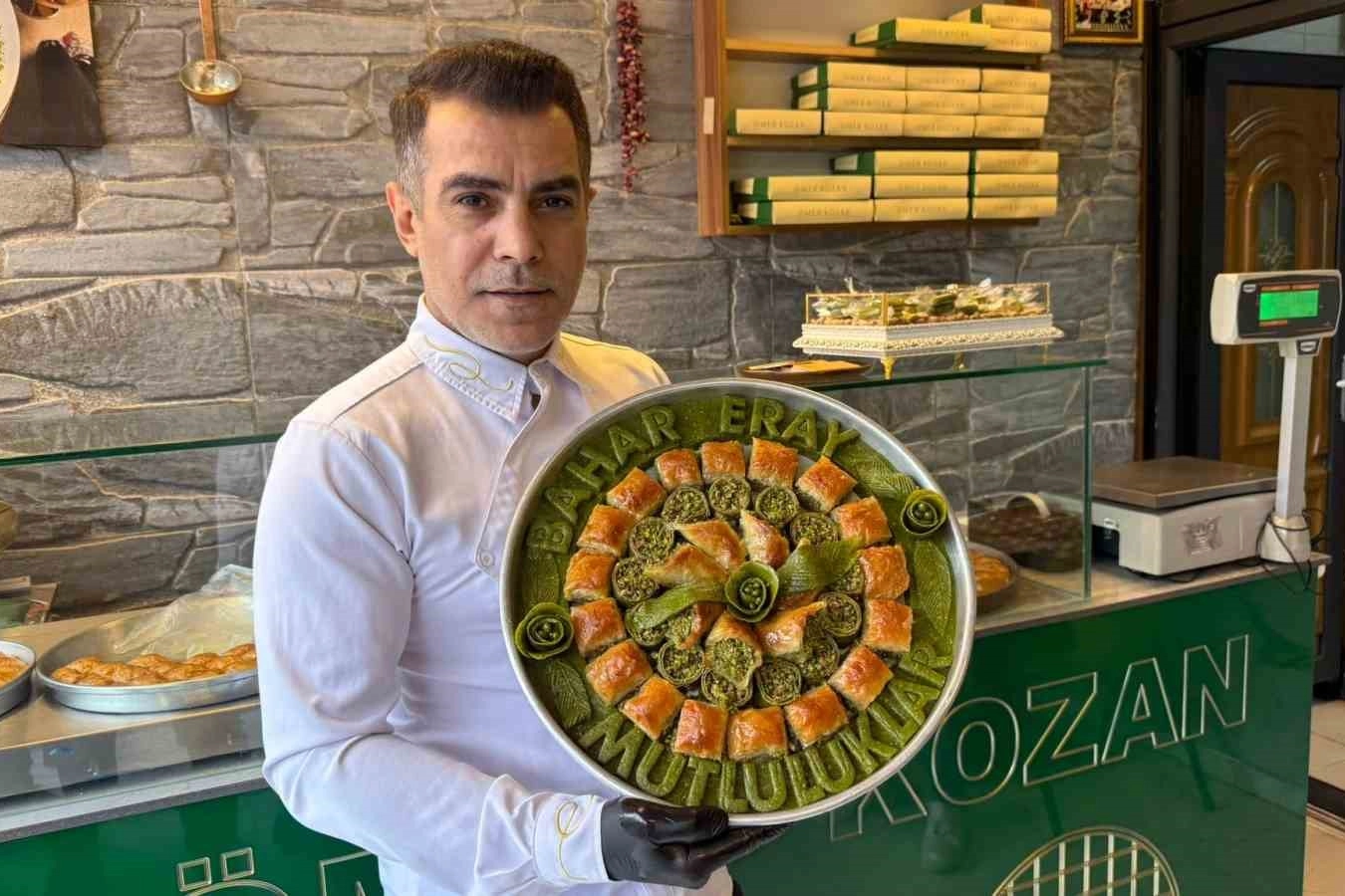 “Düğün, nişan, kız isteme merasimleri denince insanların aklına pasta, çikolata ve çiçek geliyordu. Biz Gaziantepli ustalar olarak buna yeni bir trend getirdik. Pasta ve çikolata yerine baklava olsun istedik. İçerisine baklavalarla ve fıstık ezmesiyle süslemeler yaparak sunum gerçekleştirdik. Geri dönüşler çok güzel oldu.”