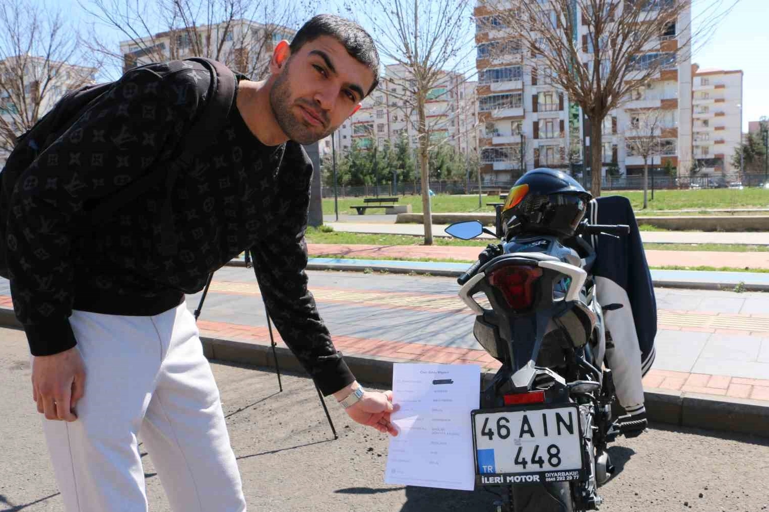 “E-devlete girip kontrol edince öğrendim ve çok şaşırdım. Motosikletten indim plakama baktım, gelen cezaya baktım aynı. 46 AIN 448 plakası bana ait ve emniyet kemeri cezası yazılmış” ifadelerini kullandı.