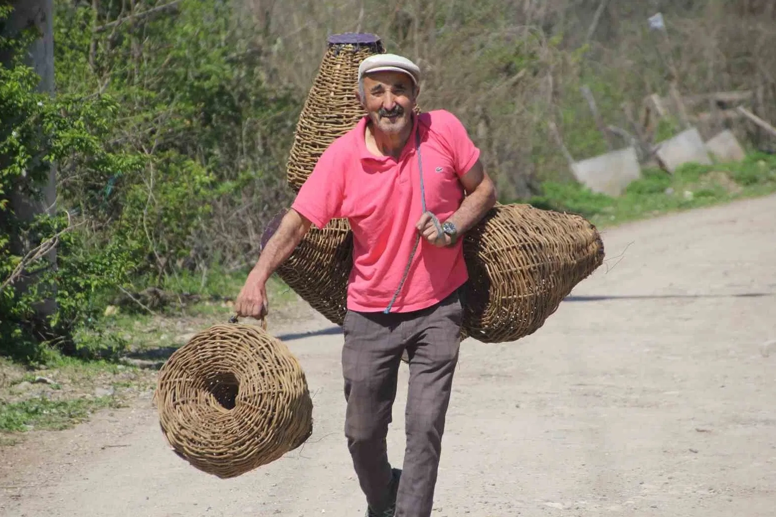 Ordu'da 62 yaşındaki Turgut Özcan, doğadan topladığı dikenli sarmaşıklarla 45 yıldır geleneksel balık sepetleri örerek geçimini sağlıyor.