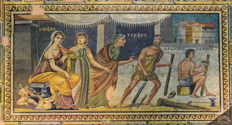 Akratos ve Euphrosine Mozaiği, şarap ve neşe teması üzerinden mitolojik bir anlatı sunarken; Akhilleus Mozaiği, Truva Savaşı’nın efsanevi kahramanının kimliğinin açığa çıktığı sahneyi dinamik bir kompozisyonla betimliyor.