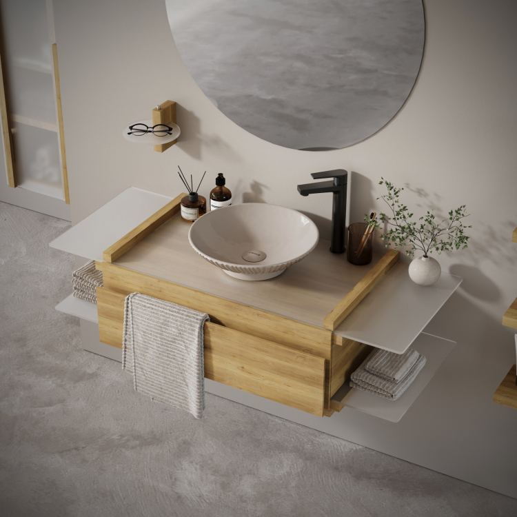 Bu vizyonun öne çıkan örneklerinden biri olan Oniva serisi, masif ahşap yapısı, modüler kurgusu ve bütünsel banyo çözümleri sunan ürün ailesiyle sürdürülebilir tasarım anlayışını temsil ediyor. Lavabo dolapları, boy dolapları, raf sistemleri, aynalar ve tamamlayıcı ünitelerden oluşan seri; doğal malzeme kullanımı ve uzun ömürlü yapı prensibi doğrultusunda tasarlanıyor. Üretim süreçlerinde CNC optimizasyonu sayesinde atık miktarı minimum seviyeye indirilirken, ortaya çıkan üretim artıklarının farklı alanlarda değerlendirilmesiyle döngüsel üretim yaklaşımı destekleniyor. Oniva serisi, estetik ve fonksiyonelliğin yanı sıra kaynak verimliliğini esas alan bir yaşam anlayışını banyo mekânlarına taşıyor.
