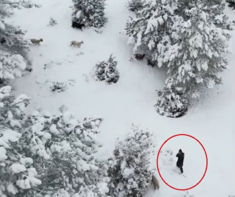 Ankara'nın Nallıhan ilçesinde doğa gezisi ve çekim yapan dron pilotunun kamerasına, aksiyon filmlerini aratmayan bir sahne yansıdı. Karla kaplı ormanda sürüsünü otlatan bir çoban, kendisine yaklaşan dronu tehdit olarak algılayınca omzundaki tüfeğe sarıldı. O anlar saniye saniye kaydedildi.