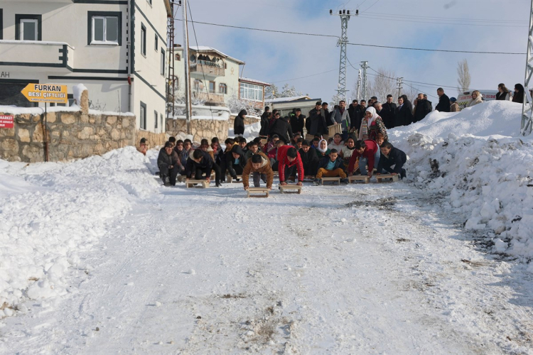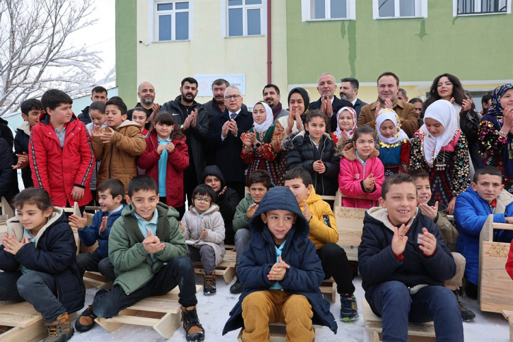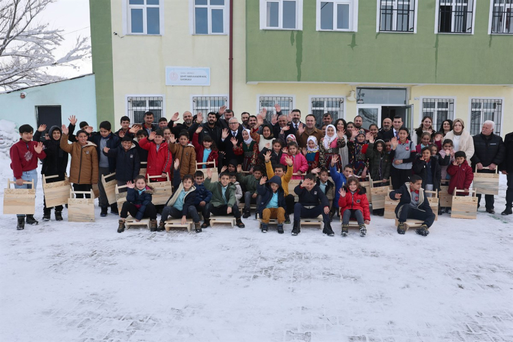 Sivas Valiliği’nin desteğiyle Koç Ahşap Yapı firması tarafından okulda eğitim gören 72 öğrenci için el yapımı tahta kızaklar hazırlandı.
